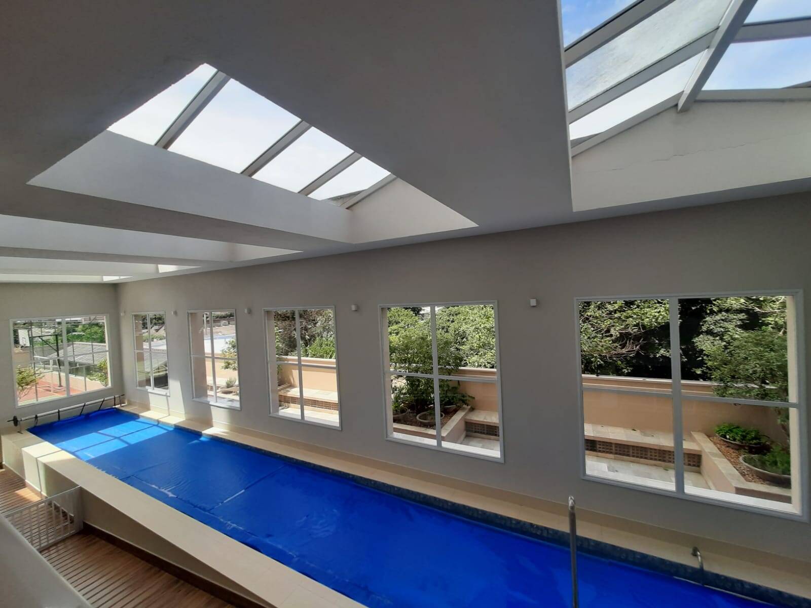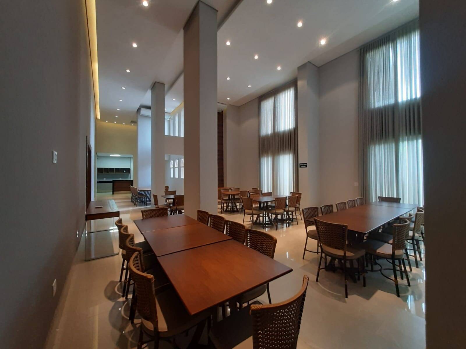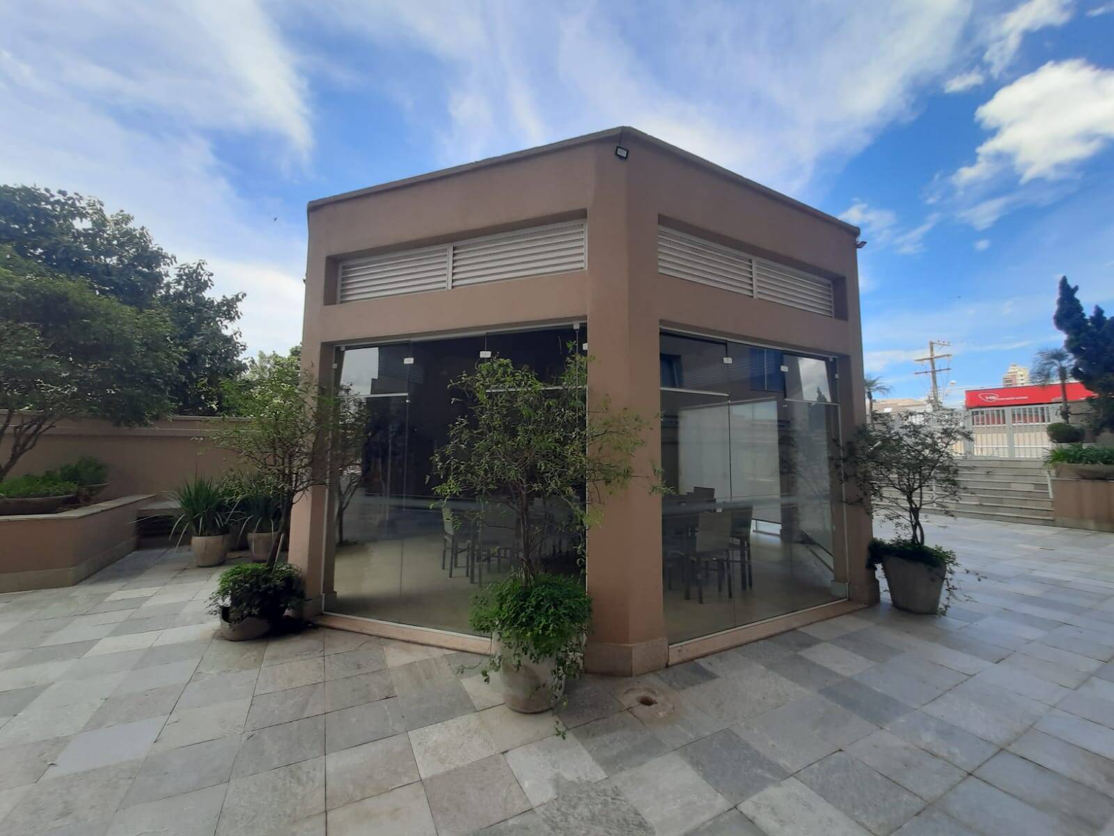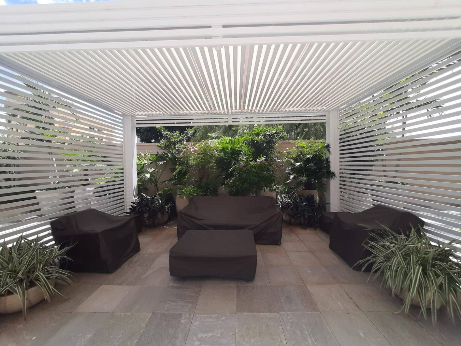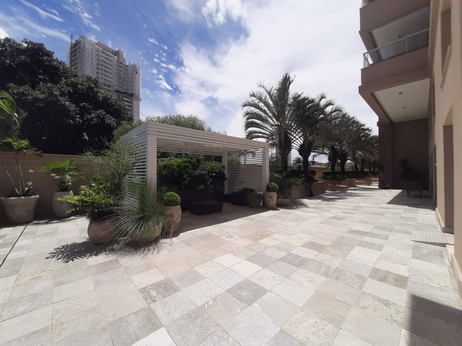 Despensa, lavanderia planejada, quarto de empregada com banheiro, 01 escritório, 01 cômodo para guardar acessórios e 04 vagas individuais cobertas.