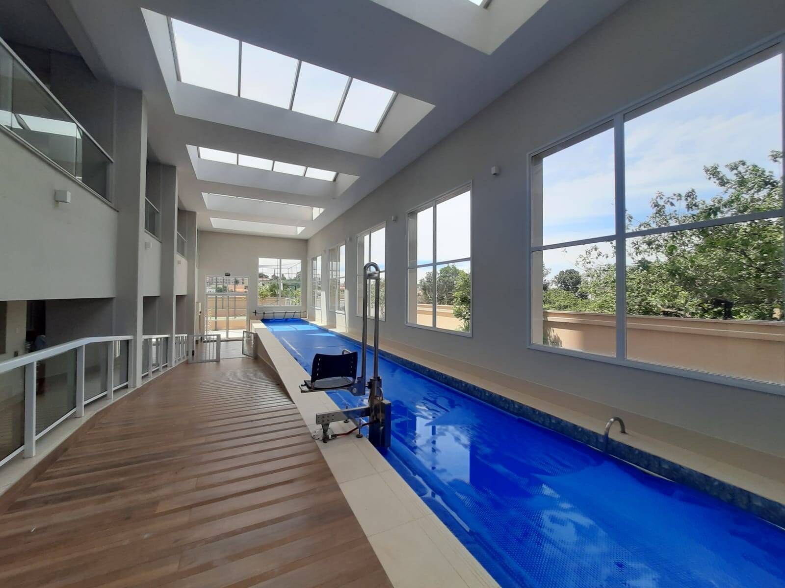 Área de lazer completa. Salão de festas com pé direito alto, salão de jogos pé direito alto, brinquedoteca, academia, sauna, sala de massagem, 03 piscinas, sendo uma interna e duas externas; quadra poliesportiva, playground, 01 quiosque gurmet com churrasqueira e 01 gazebo.